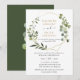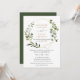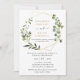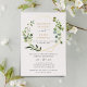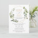 Cette élégante invitation de mariage personnalisable présente un cadre géométrique doré orné de magnifiques feuillages verts aquarelles et a été associée à une calligraphie fantaisiste et une police sérif élégante en or et gris. Pour apporter des modifications avancées, veuillez sélectionner l'option "Cliquez pour personnaliser davantage" sous Personnaliser ce modèle.