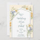 Célébrez votre histoire d'amour avec ce Faire-part de mariage Fleur sauvage géométrique. Décoré d'une bordure géométrique moderne et orné de délicats flancs peints à la main dans des tons jaunes doux, des oranges vibrantes et des bleus doux, ce design allie harmonieusement structure et élégance naturelle. L'équilibre des lignes nettes et des fleurs aquarelles aérées crée un décor sophistiqué pour vos détails mariages. Imprimée sur des cartes premium, cette invitation est le choix idéal pour les couples à la recherche d'une façon fraîche, romantique et élégante pour les clients invitations à leur journée spéciale.