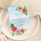 Parfait pour les mariages de destination ou tout thème tropical, cette invitation de mariage présente un cadre géométrique or tendance, et des bouquets de fleurs tropicales mixtes. Les photos de fleurs d'hibiscus rouge et rose vif et de plumérias blanches sont compensées par des feuilles tropicaux d'aquarelle. Une plage tropicale dans l'arrière - plan complète le thème. Évoquez l'atmosphère d'Hawaii lors de votre journée spéciale !