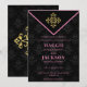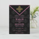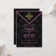 Elégant et élégant Faire-part de mariage Soirée Chic sur un arrière - plan noir à motifs avec un emblème d'or.