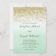 Faire-part de mariage avec parties scintillant en faux or et arrière - plan d'aquarelle vert menthe.