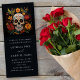 Invitations amis et la famille à votre fête mariage avec cette faire-part de mariage esthétique gothique avec un crâne entouré de fleurs dans un style faux brodé,