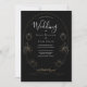 Un faire-part de mariage design, gothique, noir, or et blanc. Il dispose d'un cadre fleuri avec des roses. Cette invitation mêle une ambiance mémorable à l'élégance, vous permettant de concevoir votre mariage au gré de votre choix. Il suffit d'ajouter votre texte, d'ajouter cette invitation à votre panier, puis d'avoir un mariage qui commence votre nouvelle vie et voit tout à la fin. Floral noir gothique Faire-part de mariage de jour férié | ©Melissa Patton - Designer