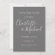Avec vos noms de style photo et signature, cette élégante carte grise et blanche de sauvegarde de la date peut être personnalisée avec vos informations spéciales de jour de mariage en lettres chic. Conçu par Thisisnotme©