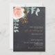 Arrière - plan de tableau de bord. Décoré d'or rose et de fleurs roses rousses, de fleurs roses et de feuilles d'eucalyptus vert aquarellés, de sprigs, de verdure et d'une fausse feuille d'or. Personnalisez et ajoutez vos noms et détails. Texte blanc et doré.