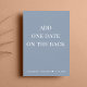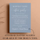 Élégant salon bleu poussiéreux ou faire-part de mariage privé et invitation à la réception ou à la fête. Sur le devant, "Happily Ever After Party" est écrit dans un mélange de typographie blanche simple et d'un élégant script blanc avec des swashes, et vous pouvez personnaliser votre message et invitation en plus de détails et ajouter vos noms dans un script signature. Au verso, vous trouverez vos prénoms et vos dates de mariage et de réception.