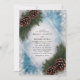 Élevez votre mariage d'hiver avec cette incroyable invitation de mariage d'hiver Pinecone et Frost. Doté d'un arrière - plan bleu glacé, orné de branches de pin réalistes et de grandes pinecones détaillées, ce design saisit l'essence d'une journée d'hiver magique. Les bords gelés offrent un cadre parfait pour vos détails mariages personnalisés, ce qui en fait l'endroit idéal pour une fête d'hiver confortable et sophistiquée. Cette invitation allie charme rustique et éléments d'hiver élégants, parfait pour les couples qui recherchent un mariage d'inspiration nature ou d'hiver.