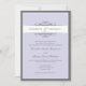 Traditionnel mais contemporain est au centre de cette belle faire-part de mariage. Le violet doux bordé de blanc et de gris fusain est à la base de cette invitation. Un panneau blanc met en valeur les noms de l'honoré, accentués par un ornement décoratif sur le dessus et le dessous. Disponible en couleurs alternatives avec des produits correspondants.