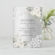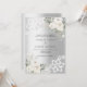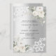 Pour une mariage élégante et romantique. Un faux arrière - plan argenté décoré de fleurs blanches, de roses et de dentelle blanche. Personnalisez et ajoutez vos noms et détails.