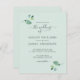 faire-part de mariage élégant, moderne et sobre, avec une calligraphie manuscrite chic et hors du noir, et une touche élégante de feuillage vert eucalyptus sur un arrière - plan vert menthe. Ajoutez simplement les détails de votre mariage. Exclusivement conçu pour vous par Happy Dolphin Studio. Si vous avez des questions, veuillez nous contacter à happydolphinstudio@outlook.com. Nous sommes heureux de vous aider à faire de votre mariage la plus belle journée!