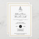 Une faire-part de mariage nautique simple et élégante pour les amateurs de voile. Un design minimaliste noir et blanc avec un cadre doré, et un dessin linéaire d'un voilier. Voir les produits correspondants dans la collection de Mariages minimaux nautiques.