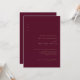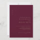 Annoncez votre grand jour avec cette invitation de mariage minimal tout en un bourgogne et or, dotée d'un design simple mais élégant. La combinaison de couleurs audacieuses bourgogne et or, ainsi que le monogramme tendance et le code QR, ajoutent une touche moderne à l'invitation inspirée de l'automne bohème. Le code QR permet aux invités de répondre facilement en ligne, ce qui rend la planification du mariage très facile. Cette invitation abordable est parfaite pour les couples à la recherche d'une option économique mais élégante. Commandez votre invitation de mariage minimaliste dès aujourd'hui et rendez votre journée spéciale inoubliable !