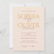 Faire-part de mariage minimaliste à l'or et à l'or. Texte rouge personnalisable. Un choix idéal pour une mariage romantique et élégante. Customisez ce design avec vos informations personnelles.