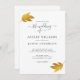 Faire-part de mariage élégant, moderne et simple avec calligraphie écriture chic off-black et une touche design de feuillage feuille or sur un arrière - plan blanc. Ajoutez simplement les détails de votre mariage. Conçu exclusivement pour vous par Happy Dolphin Studio. Si vous avez des questions, veuillez nous contacter à happydolphinstudio@outlook.com . Nous sommes heureux de vous aider à faire de votre mariage la plus belle journée!