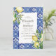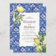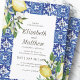 Composé de typographie serif et cursive. Le tout dans un décor aquarelle de tuiles espagnoles méditerranéennes bleues et blanches avec feuilles de feuillage verdoyant, citrons et plantes florales sauvages. Il est conçu par White Paper Birch Co., exclusif pour Zazzle. Disponible ici : http://www.zazzle.com/store/whitepaperbirch