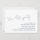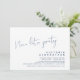 Ceci est la carte d'invitation de fête de mariage en fuite, avec un design de script minimaliste / minimaliste Bleu Nuit (Maintenant Invitation à la fête)