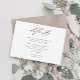 Une élégante carte de Mariage simple noir et blanc Détails de boîtier avec script moderne et texte classique. Cliquez sur le bouton Modifier pour customiser cette conception.
