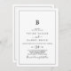 Ce faire-part de mariage monogramme minimaliste est parfait pour un mariage simple. Le design romantique moderne présente une typographie classique en noir et blanc associée à une calligraphie rustique mais élégante avec un style vintage lettré à la main. Personnalisable dans n'importe quelle couleur. Gardez le design simple et élégant, en l'état, ou personnalisez-le en ajoutant vos propres graphiques et artwork. Personnalisez la carte avec votre dernier monogramme initial.