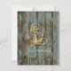 Invitation Mariage nautique d'ancre de plage en bois bleu rus
