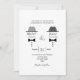 Célébrez votre amour avec ce charmant faire-part de mariage gay noir et blanc avec deux marionnettes représentées par des illustrations de casquette classique et de cravate arc. Le design épuré et la palette monochrome audacieuse en font un endroit idéal pour les mariages de même sexe modernes, minimalistes ou formels. Inclut le texte modifiable pour vos noms, date, emplacement et détails RSVP. Parfait pour les chambres élégantes qui veulent une façon amusante et élégante d'annoncer leur journée spéciale.