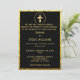 Invitation Mariage noir de la Croix chrétienne d'or tradition