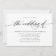 Une invitation de mariage simple, classique et élégante comprend un script de typographie en lettres manuscrites "le mariage de" et des détails en lettres majuscules en gras sur un arrière - plan blanc.