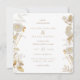 Feuillage floral et botanique doré opulent, faire-part de mariage en blanc arrière - plan et coordonnant le texte beige. Elégant thème monochromatique en faux or et beige.