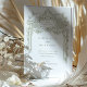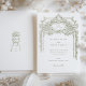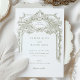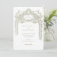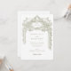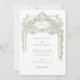 Cette élégante invitation au mariage présente un design d'inspiration antique avec un arrière - plan en ivoire doux et des accents floraux et architecturaux aux tons olive détaillés. L'avant de la carte est joliment ornée d'une arche florale complexe, encadrant les détails mariages dans une police serif classique, évoquant un sentiment d'élégance et de raffinement intemporel. Le dos de la carte présente une urne délicatement esquissée remplie de fleurs, ajoutant une touche personnelle et sophistiquée. Les tons olives feutrés associés à l'ivoire antique créent une atmosphère harmonieuse et luxueuse, ce qui en fait une invitation parfaite pour un mariage d'inspiration formelle et vintage. Cette invitation est un parfait mélange de design classique et de luxe sobre.