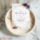 Ce faire-part de mariage de calligraphie de parties scintillant d'or géométrique est parfait pour un mariage rustique. Le design se compose de l'aquarelle dessinée à la main violet, marine, rousse, bordeaux, fleurs marines, feuilles verts et or, ornant un cadre géométrique élégant.