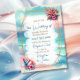 Elégantes invitations de mariage à thème pastel côtier. Eau douce rose pastel et bleu pâle aux accents d'étoiles de mer, coquillages, hippocampes et fleurs tropicales. Le thème de mariage de la plage d'aquarelle.