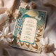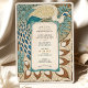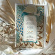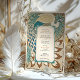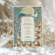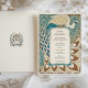 Cette superbe faire-part de mariage Art Nouveau présente une illustration complexe de paon avec des plumes fluides et élégantes dans des bleus profonds, des verts doux et des dorures chaudes. Inspiré par l'esthétique luxueuse du début du XXe siècle, le cadre botanique orné et les détails délicats apportent une touche sophistiquée et vintage. L'invitation mêle des éléments de décoration raffinés à une typographie raffinée, ce qui en fait un lieu de séjour idéal pour les couples qui apprécient l'élégance intemporelle. L'arrière est orné d'un emblème minimaliste aux motifs floraux entrelacés, apportant une touche artistique et personnelle. Idéal pour les mariages vintage, d'inspiration nature ou de style Art Nouveau.