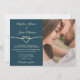 Coeur élégant et sophistiqué de corde en feuille d'or en combinaison avec l'arrière - plan bleu marine et photo personnalisée du couple. Adorable, simple, minimaliste Faire-part de mariage.