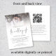 Script moderne QR Code Mariage photo. Ajoutez votre code QR à votre site Web mariage au dos fait de cette option pratique pour vos invités à RSVP et voir tous les détails sans avoir besoin de RSVP séparé et de cartes de détails. Votre code QR sera généré automatiquement lorsque vous changerez l'exemple d'url en votre propre nom. Une typographie informelle en noir pour le titre principal Le Mariage de compléter le reste du texte que vous pouvez facilement personnaliser. Remplacez l'exemple de photo par votre préféré.
