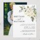 Watercolor Ivory White Floral Greenery Card comprend des roses blanches crème d'ivoire et de la verdure botanique. Élégant Script de calligraphie. Photo De Retour.