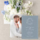 Invitation Mariage photo de monogramme de crête feuillue bleu
