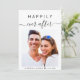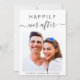 Faire-part de mariage moderne avec votre photo, "Happily Ever After" dans un mélange de typographie simple et d'un script chic avec des swashes et vos prénoms et votre date de mariage réunis par un coeur. Au contraire, personnalisez votre invitation en typographie élégante.