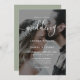Elégante invitation de mariage avec une police de caractères moderne. Personnalisez facilement ces invitations de mariage vert sauge avec vos images et détails mariages. Éléments correspondants disponibles.