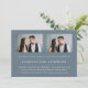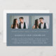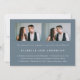 Faire-part de mariage bleu et blanc poussiéreux simple et minimal avec dossier blanc solide de la carte. Cette faire-part moderne est une façon élégante de faire connaître aux clients votre célébration mariage à venir, et comporte deux photos.