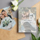 Faire-part de mariage moderne noir et blanc avec deux photos fiançailles et un script de calligraphie chic.