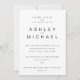 Une superbe faire-part de mariage de typographie moderne noir et blanc ! Cet élégant design présente vos noms comme élément de design central, avec tout le texte dans la typographie noir sans serif chic, sur un arrière - plan blanc immaculé. Le verso de l'invitation présente votre photo fiançailles préférée. Ce design sophistiqué conviendra à une variété de thèmes mariages. Copyright de conception Anastasia, Lady of Lochaber and Glencoe, 2019. Tous droits réservés.