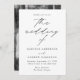 Faire-part de mariage minimaliste et moderne avec vos détails mariages en lettres noires simples avec "le mariage de" dans un élégant script de calligraphie avec un arrière - plan blanc. L'invitation s'inverse pour afficher votre photo de fiançailles vertical. Conçu pour coordonner avec notre collection de mariages Modern Elegance.
