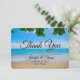 Une carte de remerciement de mariage avec une photographie de paysage d'une plage tropicale. Eau azur et ciel bleu avec des vagues douces qui viennent lécher le rivage avec quelques nuages au loin.