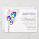 Une invitation élégante et classique présente une belle illustration vectorielle de plumes paon sur un arrière - plan violet profond. Parfait pour les mariages, les douches nuptiales, les fêtes d'anniversaire, les fêtes de sweet sixteen et plus encore !