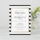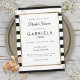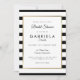 Conçu pour se coordonner avec notre collection de mariage rayée classique. Avec un fond rayé noir et blanc classique, cette invitation de shower de mariage élégante présente une bordure de faux or élégante encadrant les détails de votre shower de mariage dans une typographie chic. Conçu par Thisisnotme©