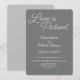 Invitation de réception de mariage élégante et tendance de couleur grise. Cette conception présente une police moderne pour les mots "L'amour est patient" en typographie. Personnalisez cette annonce de mariage qui fait double emploi avec l'invitation à la réception de mariage avec les noms des mariés et tous les détails de la fête sur l'échange de vœux et la fête de mariage. Cette conception de mise en page chic et élégante est facile à personnaliser.