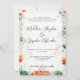 Faire-part de mariage florale contemporaine et élégante avec une belle aquarelle fleur sauvage dans une palette de couleurs blanche, verte et orange complétée par une police calligraphique moderne pour un look romantique mais élégant.