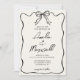 Donnez le ton à votre journée de rêve avec cette adorable faire-part de mariage ! Doté d’une jolie bordure en ruban coquette noire dessinée à la main, il est doux, élégant et totalement vous. Personnalisez-le avec vos détails pour créer l'invitation parfait pour votre célébration romantique !