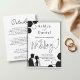 Cette élégante faire-part de mariage en noir et blanc conviendra parfaitement à une mariage moderne. Le design simple présente une élégante calligraphie noire, un cadre noir chic et une illustration de mariée et de mariée sur un arrière - plan blanc propre. La carte d'invitation comprend les détails du mariage au dos au lieu de payer une carte d'enceinte séparée.