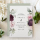 Faites une déclaration avec cette belle faire-part de mariage rose aquarelle fleurie qui comporte des bordures florales de chaque côté du texte élégamment placé. Les couleurs comprennent le rose pâle, le rouge bordeaux profond et le prune mélangés à la verdure éthérée et de minuscules fleurs blanches d'accent. Personnalisez le modèle de texte avec vos informations. Le côté arrière de cette invitation est un vert sage coordonné. D'autres couleurs sont disponibles, ou vous pouvez changer la couleur arrière - plan en blanc ou n'importe quelle couleur de votre choix.