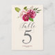 Une florale de roses aux tons bordeaux et crème est le point de mire de nombreuses pièces de cette suite mariage qui dispose également d'un texte élégant et d'aménagements design modernes. La carte de numéro de table de mariage présentée ici a une disposition supérieure de roses et de texte de script courant. Entrez facilement vos numéros de table à l'aide du modèle fourni. Cherchez ID584 pour voir toutes les pièces correspondantes dans ce bel ensemble de mariages.